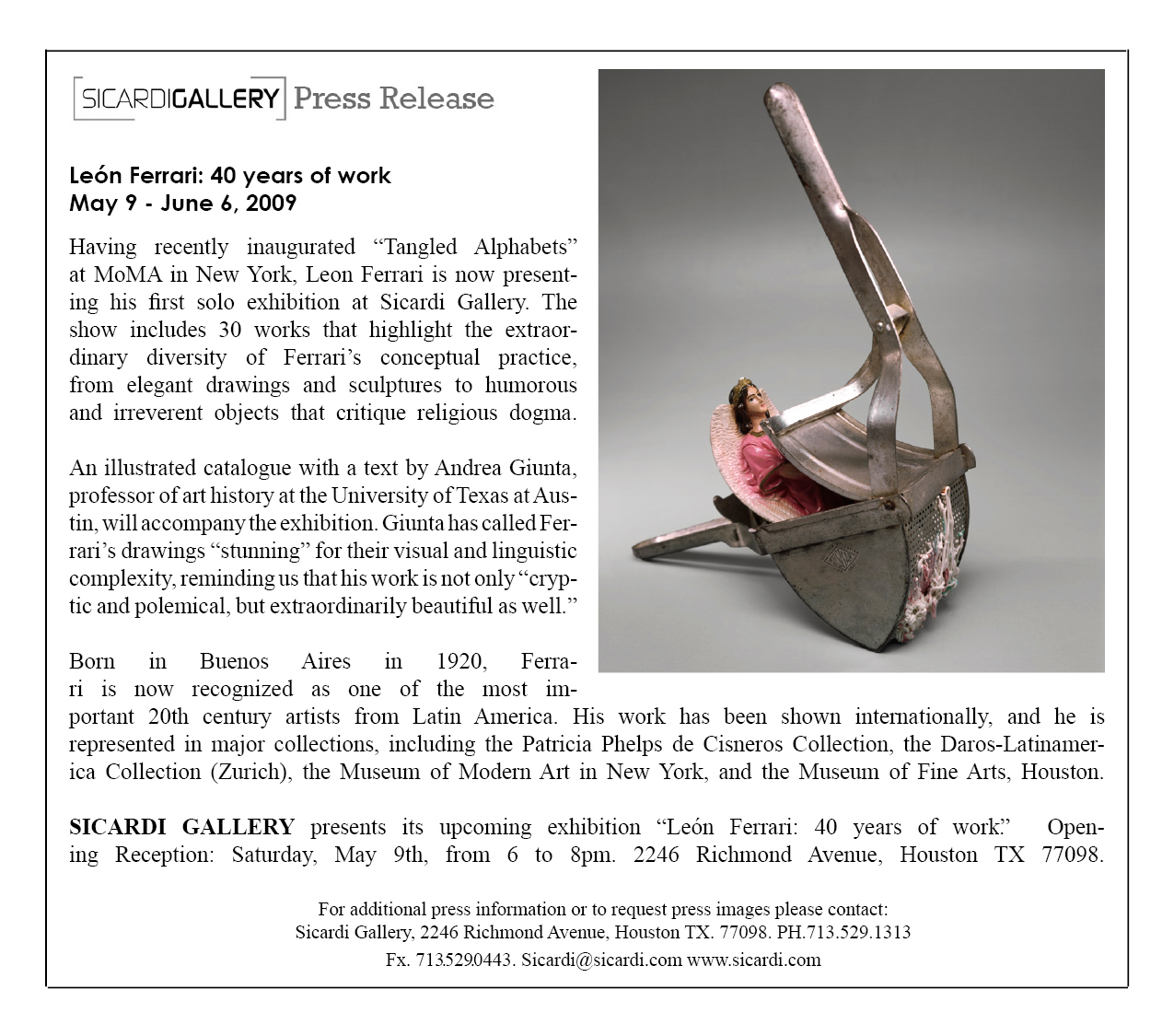 León Ferrari, Sicardi Gallery installation view, 2009
